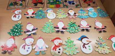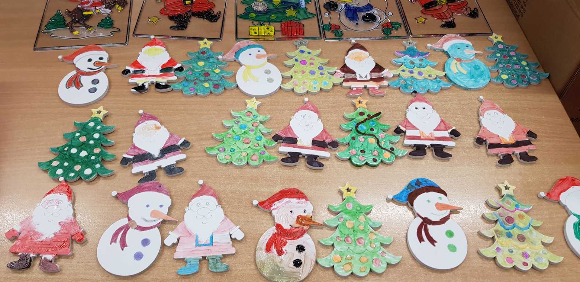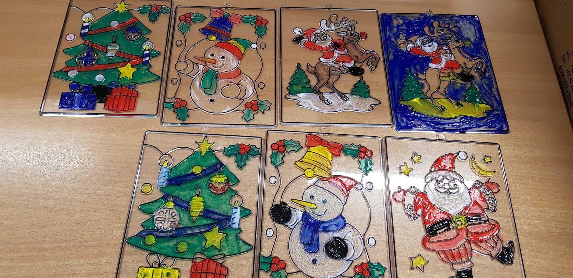 Następnie wykonaliśmy przepiękne ozdoby choinkowe i witraże.