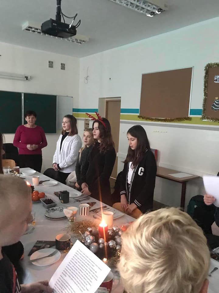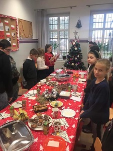W tym tygodniu, we wtorek w każdej klasie odbyła się klasowa wigilia. Były smaczne potrawy, pachnące mandarynki, pyszne pierniczki.