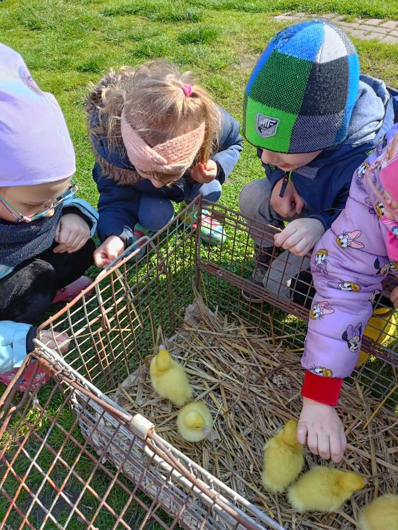 Dzieci miały okazję zobaczyć zwierzęta mieszkające w wiejskiej zagrodzie oraz z zainteresowaniem wysłuchały opowieści o codziennych obowiązkach gospodarza.