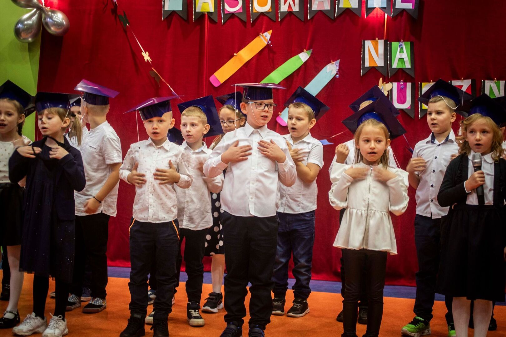 🍁☘🍀19 października 2023 roku w Gminnym Ośrodku Kultury w Górzycy odbyło się Pasowanie na ucznia. 👩🎓👨🎓 Był to szczególny dzień, który na długo zostanie w naszej pamięci. W tym dniu dzieci oficjalnie zostały przyjęte do grona uczniów naszej szkoły. Podczas uroczystości pierwszoklasiści pokazali, że potrafią pięknie śpiewać, recytować wierszyki oraz tańczyć jak wirujące listki na wietrze 🍂🍀🍁 Najważniejszą częścią uroczystości, na ktorą wszyscy czekali było ślubowanie oraz pasowanie wielkim kluczem przez panią dyrektor Ewę Thiemann oraz pana Wójta Gminy Górzyca Roberta Stolarskiego. Swoją oecnośćią zaszczyciła nas również pani Małgorzata Gniewczyńska dyretor Gminnego Ośrodka Kultury w Górzycy oraz pani Agnieszka Paprocka - przewodnicząca Rady Rodziców naszej szkoły. Miło było nam również gościc naszych wspaniałych kolegów z klasy III oraz ich wychowawczynię , panią Aleksandrę Murawską, ktorzy mocno trzymali za nas kciuki i wspierali nas swoją obecnością. Pierwszaki głośno i z przekonaniem przyrzekali być dobrymi i pilnymi uczniami oraz rzetelnie wypełniać swoje obowiązki szkolne , o czym będą im przypominać otrzymane dyplomy, medale oraz inne upominki, które przynieślni nam zaproszeni goście.🍭😍 Wszystkim pierwszoklasistom w tak ważnym dniu dla nich życymy wielu sukcesów na nowej drodze obowiązków szkolnych. Pasowanie przygotowała pani Danuta Nowak, wychowawczyni klasy pierwszej.