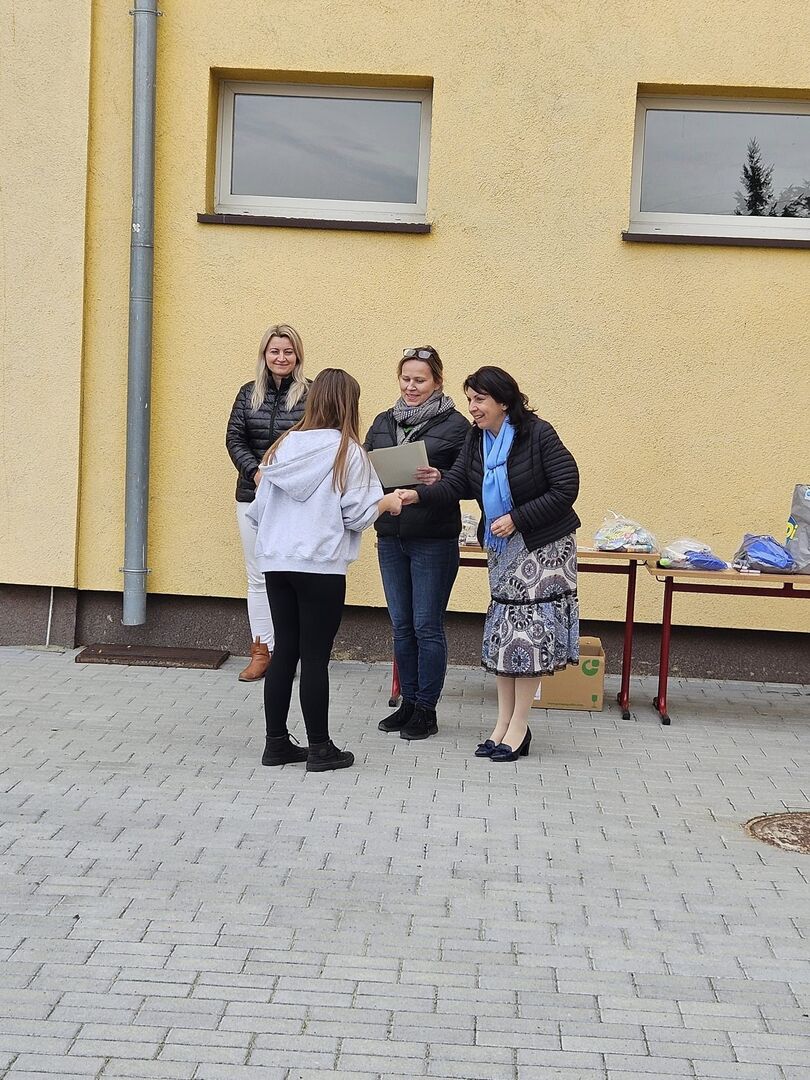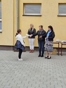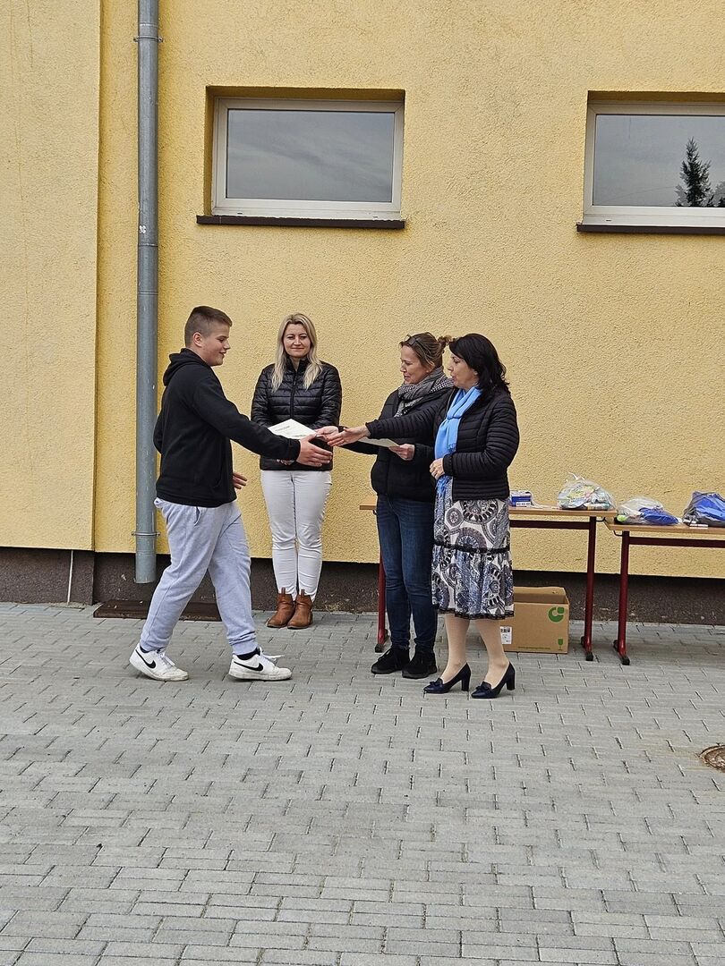Wszystkie klasy, które wzięły udział w konkursie otrzymały dyplomy. Klasy , które stanęły na podium nagrody rzeczowe, kl. 5a, najbliższa podium drobne upominki. Dodatkowo klasa 6 a plakietki z piękną sentencją J.W. Goethego: " ZAWSZE BĄDŹ SZLACHETNY , BĄDŹ DO POMOCY GOTOWY".