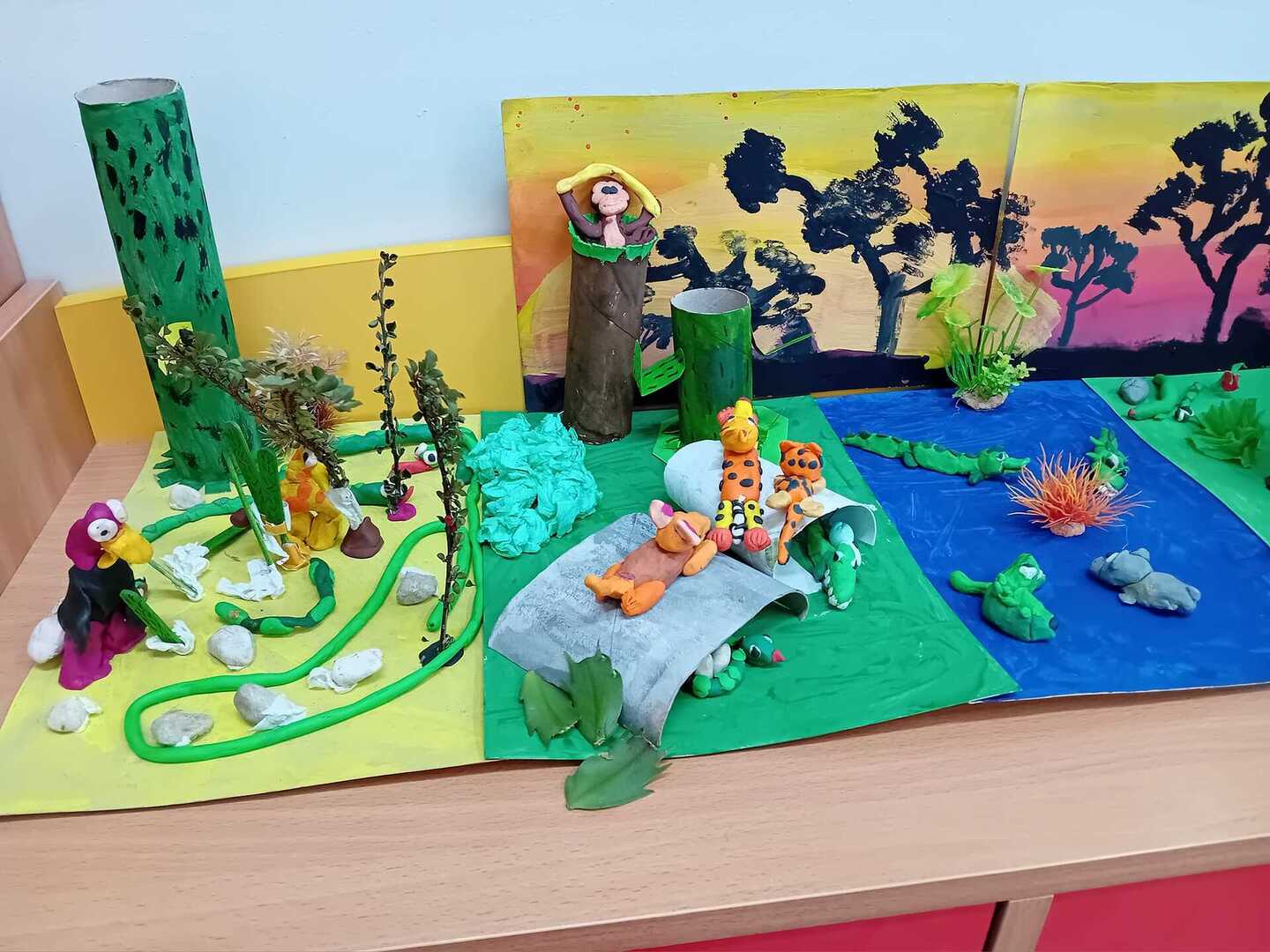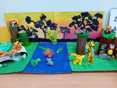 Klasa IIa podczas zajęć tematycznych ,, Zwierzęta Afryki", wykonała piękne zwierzęta z plasteliny. W kolejnych dniach zdobytą wiedzę wykorzystali przy konstrukcji makiety afrykańskiej. Z pomocą nieograniczonej wyobraźni, ogromnych pokładów cierpliwości i wzajemnej współpracy stworzyli piękny skrawek Afryki 😀🦁🐯🐒🐍🐘🦓🌵🌳