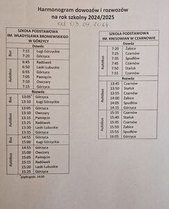 Harmonogram dowozów i rozwozów uczniów- od 3.09.2024 Galeria zdjęć Powiązane wiadomości Najlepsze życzenia! Zestaw podręczników do klasy ,,0" na rok szkolny... Wyprawka dla ucznia klasy 1 Harmonogram dowozów i rozwozów uczniów- od 3.09.2024 Pierwsza pomoc 11 Listopada Narodowe Święto Niepodległości Drukuj Udostępnij Data dodania: 02.09.2024 Wyświetlono: 118 Aktualności