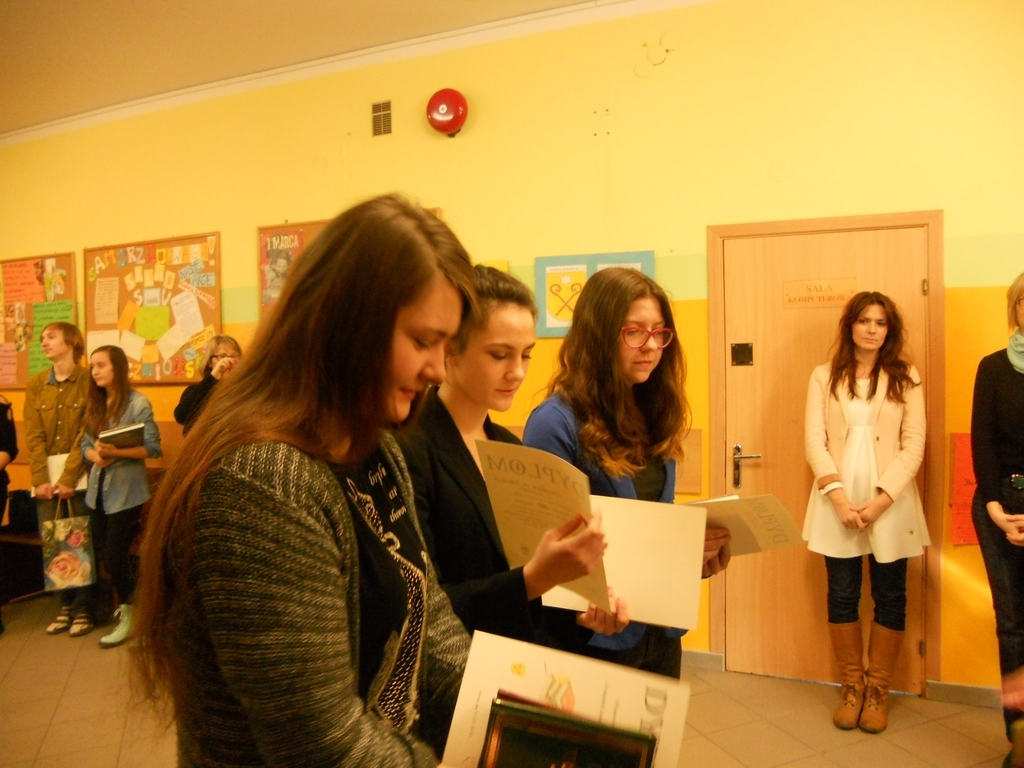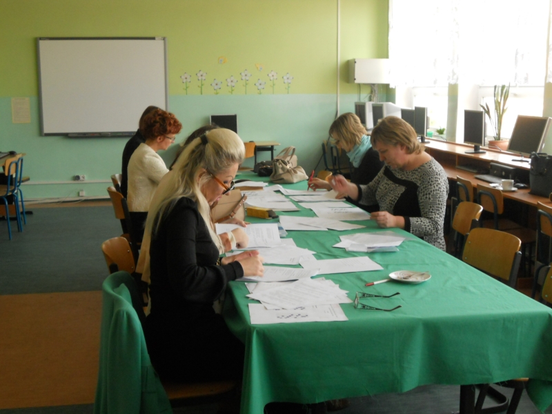 Następnie uczniowie udali się do klas, aby w ciągu godziny rozwiązać test dotyczący podanych lektur. Konkurs przeprowadziła Komisja w składzie: Maria Syktus (przewodnicząca), Wioletta Frącala (sekretarz) oraz nauczycielki : Anna Pawłowska, Edyta Kozłowska, Joanna Michałowska, Edyta Kosmala, Małgorzata Soloch.