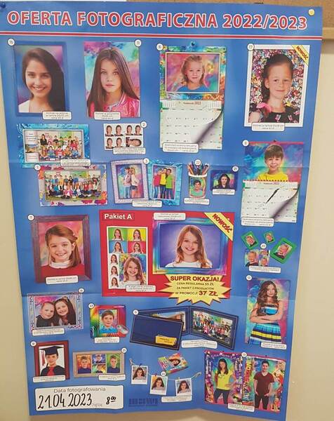 05.04.2023 Aktualności Uwaga, zdjęcia! Uwaga, uwaga! Już 21 kwietnia (piątek), do naszej szkoły przyjeżdża fotograf, który wykona uczniom zdjęcia klasowe. Prosimy o zapoznanie się z ofertą umieszczoną na plakacie. Czytaj więcej