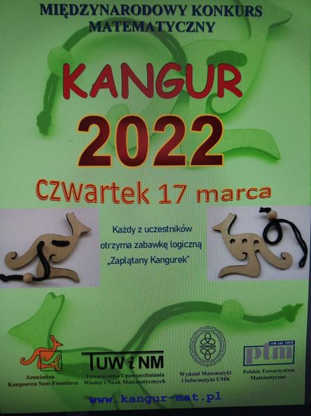 17.03.2022 Aktualności KANGUR 2022 Dziś tj. 17 marca, w naszej szkole odbył się Międzynarodowy konkurs matematyczny "Kangur". W konkursie brali udział uczniowie z klas II - VIII, z podziałem na kategorie wiekowe. Inicjatorem Międzynarodowego... Czytaj więcej