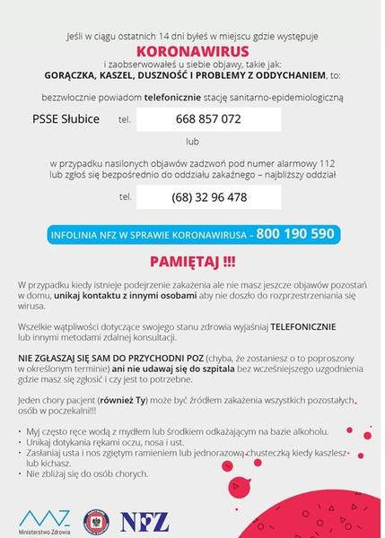 05.03.2020 Aktualności WAŻNE INFORMACJE!!! Prosimy o zapoznanie się z informacjami zawartymi w ulotce Czytaj więcej